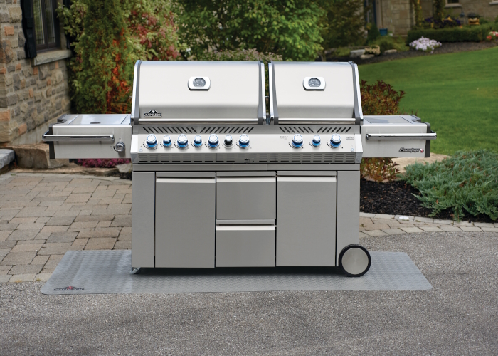 Грязезащитный напольный коврик. Используется под угольными или газовыми грилями. Предназначен для защиты напольного покрытия под грилем от масла или случайно упавших раскаленных углей. Модный серый цвет и текстурированный рисунок коврика придадут барбекю-зоне стильный внешний вид. Его поверхность легко моется водой или мыльным раствором.