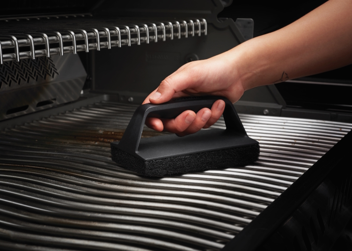 Абразивная губка для чистки решеток гриля. Губка предназначена для очистки чугунных решеток с фарфоровым покрытием. Она не повреждает поверхность решеток и не оставляет опасных для здоровья частиц. Эргономичная, термостойкая ручка обеспечивает максимальный комфорт при работе для человека с любым размером ладони. Губку можно использовать только на холодных решетках гриля.