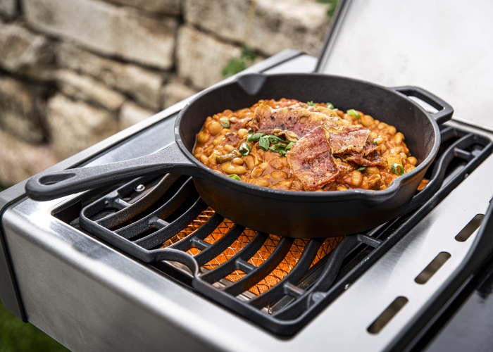 Сковорода из низко-пористого чугуна диаметром 24 см. Чугунная посуда не боится длительного нагрева и не подвержена температурным деформациям, а ее естественные антипригарные свойства со временем только усиливаются. За счет высокой теплоемкости чугуна такая посуда долго держит тепло и экономит энергию. При ее правильном использовании и уходе, она прослужит не одному поколению семьи. Сковорода предварительно прокалена, и не требует специальной подготовки перед первым использованием. В ней легко приготовить любые блюда из мяса, овощей и десерты. Расположенные на бортике носики позволят аккуратно переливать соус или другие жидкости. Для удобного перемещения, она имеет две ручки. Что бы не обжечься, не забывайте использовать термостойкие перчатки для защиты рук от высоких температур. В сковороде можно готовить на решетках гриля, боковой конфорке и высокотемпературной инфракрасной горелке Sizzle Zone, а так же на плите или в духовке на кухне городской квартиры.