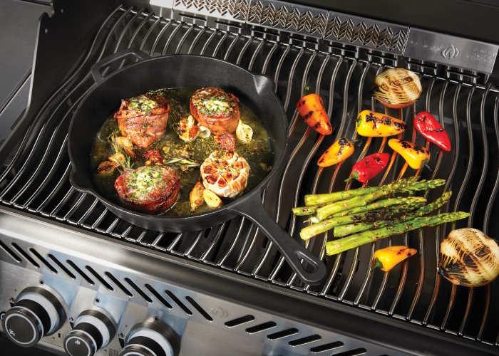 Сковорода из низкопористого чугуна диаметром 30 см. Чугунная посуда не боится длительного нагрева и не подвержена температурным деформациям, а ее естественные антипригарные свойства со временем только усиливаются. За счет высокой теплоемкости чугуна такая посуда долго держит тепло и экономит энергию. При ее правильном использовании и уходе, она прослужит не одному поколению семьи. Сковорода предварительно прокалена, и не требует специальной подготовки перед первым использованием. В ней легко приготовить любые блюда из мяса, овощей и десерты. Расположенные на бортике носики позволят аккуратно переливать соус или другие жидкости. Для удобного перемещения, она имеет две ручки. Что бы не обжечься, не забывайте использовать термостойкие перчатки для защиты рук от высоких температур. В сковороде можно готовить на решетках гриля, боковой конфорке и высокотемпературной инфракрасной горелке Sizzle Zone, а так же на плите или в духовке на кухне городской квартиры.