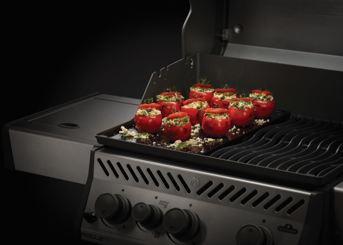 Приготовление на планче отличается от приготовления на стандартной решетке гриля тем, что на ней можно готовить мелкие продукты, например, макароны, лук, бекон, креветки, которые не будут проваливаться в очаг гриля. На плоской стороне планчи удобно готовить блюда, требующие быстрой обжарки и перемешивания, а на ребристой стороне, с фирменным рисунком Napoleon WAVE™, обжаривают стейки, сосиски, рыбу. Приготовление на такой поверхности происходит без применения масла, или с его очень маленьким количеством, так как соки выделяющиеся из продуктов, не будут уходить сквозь решетку. Блюда готовятся в собственном соку, сохраняя при этом вкус, сочность и полезные свойства. Гриль-противень "Планча" может устанавливаться на решетку гриля или вместо нее. На кромке поверхности противня расположены отверстия, которые способствуют отводу лишнего жира и сока при готовке.