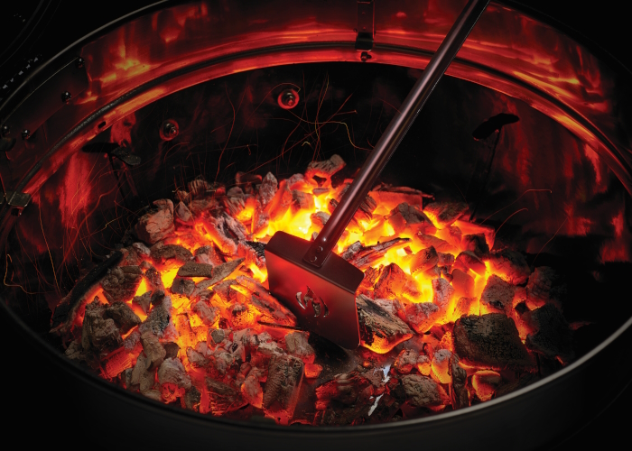 С помощью набора, состоящего из кочерги и щипцов, можно удобно, безопасно сгребать и перемещать горячий уголь. Длинна этих аксессуаров позволяет не обжигать руки при работе с раскаленным углем. Ручка кочерги снабжена съемником для решеток гриля. Щипцы имеют длину 50,8 см, а кочерга - 63 см.