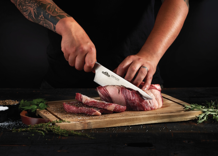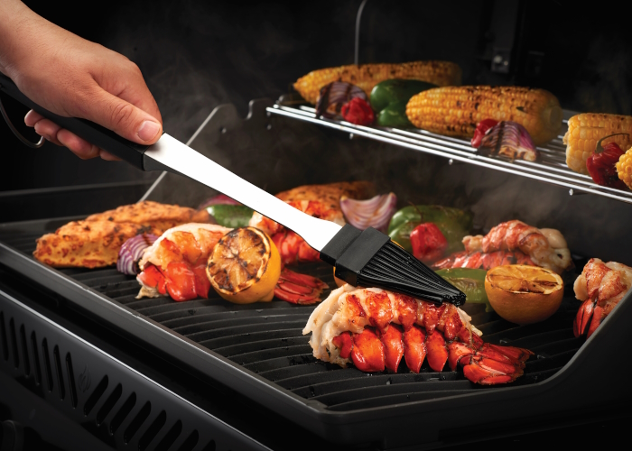 Щетинки кисти прекрасно удерживают на ней масло, соусы и соки. Щетинки из силикона более гигиеничны, чем щетинки из природного материала. Острый нож шеф-повара идеально сбалансирован от кончика лезвия до конца ручки. Лезвие острое как бритва прекрасно справляется с нарезкой, измельчением и шинковкой продуктов. Щипцы, кисточка и лопатка снабжены кольцами для удобного размещения на гриле.