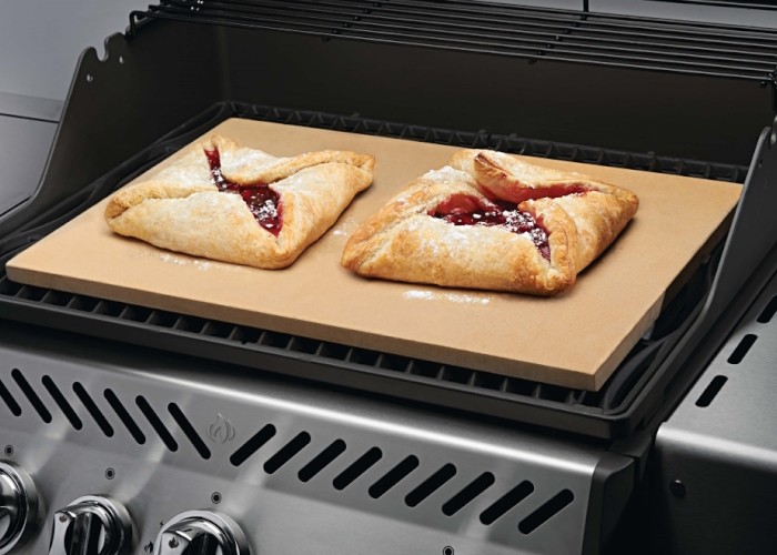 Большой прямоугольный камень для пиццы и выпечки размером 54х35 см. Камень изготовлен из пористого кордиерита, который поглощает избыток влаги из теста. Пицца и выпечка будут равномерно пропекаться, делая тесто нежным и воздушным, а корочку хрустящей и не подгоревшей. При выпекании на камне рекомендуется посыпать его поверхность мукой или хлебной крошкой, чтобы предотвратить пригорание продуктов. Кордиерит не любит резких перепадов температур, поэтому камень кладут в холодный гриль. Нагрев гриля и камня должен происходить одновременно. После приготовления нужно дать камню полностью остыть в гриле, прежде чем вынимать его для чистки. После полного остывания камень рекомендуется мыть вручную теплой водой, без использования химических средств.