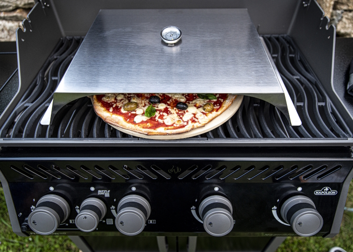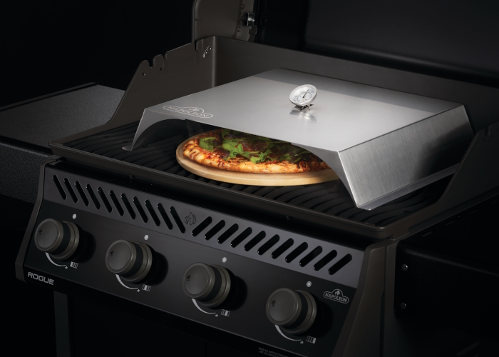 Крышка для приготовления пиццы и выпечки из пищевой нержавеющей стали. Крышка позволяет готовить пиццу или выпечку, не закрывая крышки гриля. Она устанавливается на решетку гриля и благодаря закрытой конструкции обеспечивает равномерное пропекание с идеальной хрустящей корочкой. Встроенный датчик температуры ACCU-PROBE™ позволяет точно контролировать температуру приготовления.