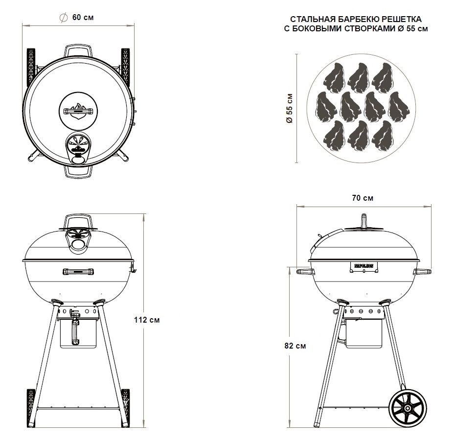 Направляет воздушный поток в разные стороны, обеспечивая равномерное горение угля и распределение жара по всему объему гриля.