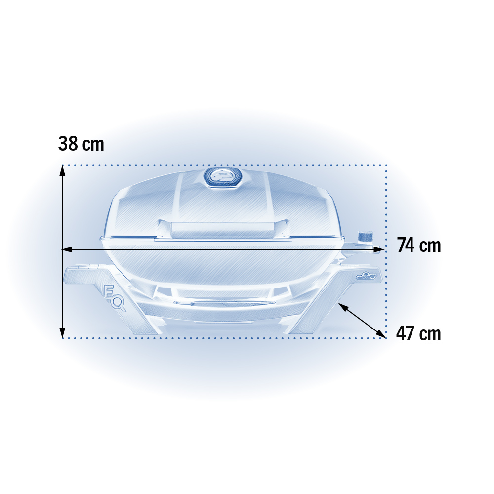 Портативный электрический гриль NAPOLEON® TravelQ PRO-285E, который входит в комплект, обладает одним ТЭНом (Трубчатым Электрическим Нагревателем) мощностью 2.2 кВт. Такой мощности будет достаточно, чтобы обеспечить быстрый набор и удержание температуры на заданном уровне даже зимой!