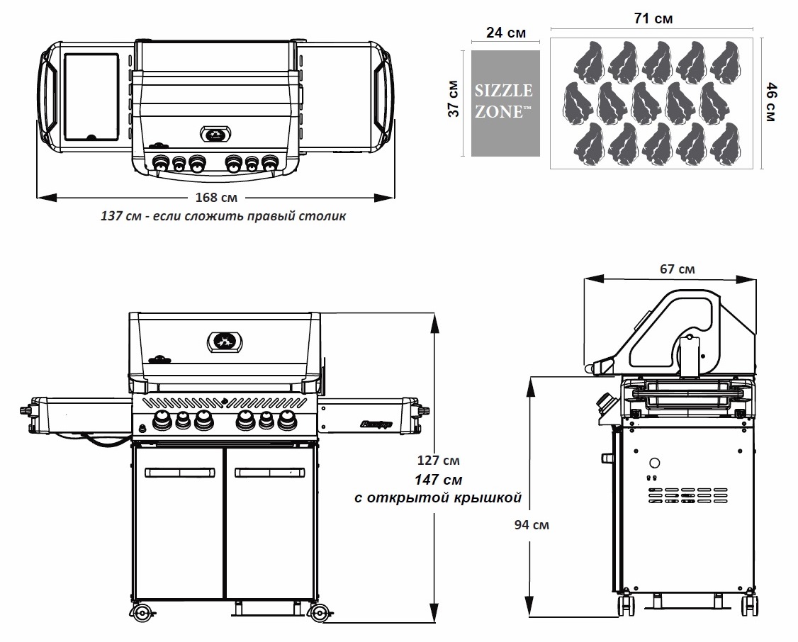 The generously sized side shelves are also made from high grade stainless steel and feature an integrated towel bar that doubles as a condiment or drink holder, so nothing is ever out of reach. One side shelf also holds the infrared SIZZLE ZONE™ side burner while the other folds down for storage and features optional locking screws. This side burner heats in seconds heating to nearly 1,800°F for perfect searing. Lock the juices in by searing the perfect steak, then finish it over indirect heat on the main grill, just like in a steakhouse.