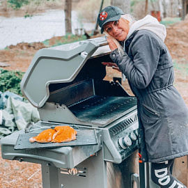 Очаг гриля выполнен из литого алюминия и оснащён тремя основными газовыми горелками из нержавеющей стали, мощностью 4,75 кВт каждая. Такой мощности будет достаточно, чтобы жарить стейки или готовить большие куски мяса даже зимой!