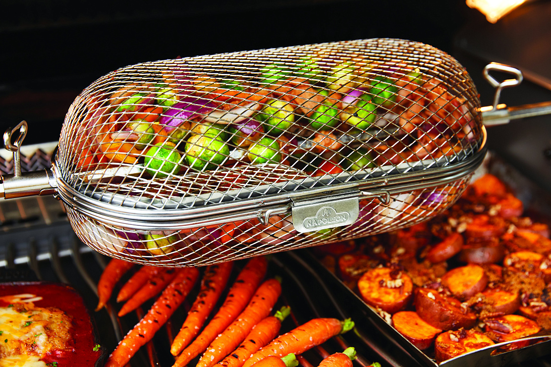 У компании NAPOLEON® есть оригинальная насадка (арт.64005), используя её можно приготовить продукты, которые сложно нанизать на шампуры или вертел.