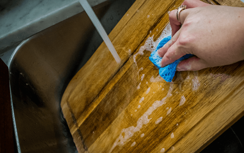 2. При чистке деревянной разделочной доски не забывайте мыть все ее стороны. Если мыть только одну сторону, доска может деформироваться и потрескаться.