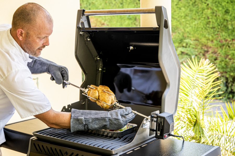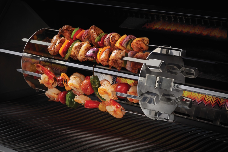 Возможности вертелов NAPOLEON® распахнут Вам двери в отдельный мир кулинарии. На протяжении веков приготовление на вертеле было популярнейшим излюбленным способом для запекания больших кусков мяса или даже туш целиком, потому, что при готовке на вертеле происходит равномерное пропекание продукта с каждой стороны и при этом, весь сок и смак остаётся внутри блюда. Вертелом можно оборудовать абсолютно любой газовый гриль NAPOLEON®. Электромотор к нему идет в комплекте. Прелесть этой неразлучной парочки в том, что весь процесс приготовления будет проходить в автоматическом режиме. От Вас потребуется лишь насадить продукт на ось вертела и зафиксировать его специальными вилками, которыми он укомплектован. После установки вертела на очаг гриля и включения электрического мотора, начинается магия. Блюдо плавно вращается, равномерно пропекаясь со всех сторон, сверху образуется румяная корочка, а внутри продукта сохраняется максимум соков и аромата. И не надо бояться насаживать большие куски. Высота крышек грилей NAPOLEON® позволяет поместить куски мяса даже очень нескромных размеров. А в случаях, когда требуется придать блюду красивую, хрустящую корочку можно использовать заднюю горелку для вертела, не забыв, при этом, выключить нижние горелки.