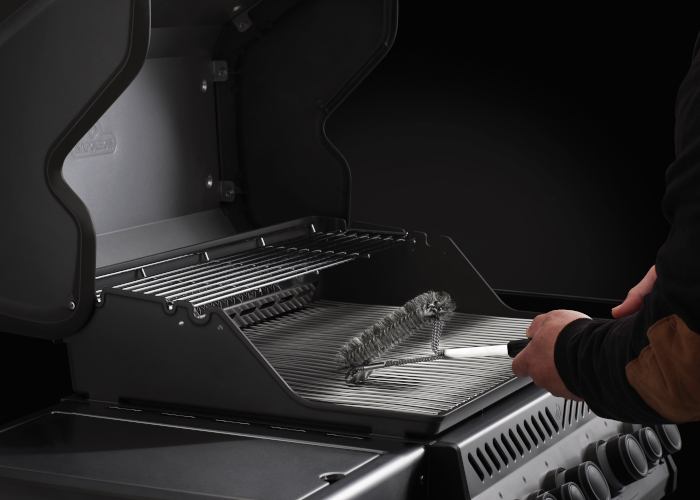 После каждого приготовления пищи на гриле необходимо провести обслуживание решёток.1. После приготовления блюд, прокалите решётку на высокой температуре.