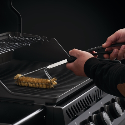 2. С помощью щётки с латунным ворсом (арт.62062) очистите поверхность решётки от остатков пищи.
