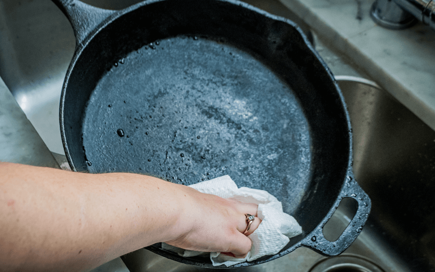 После каждого приготовления пищи необходимо провести обслуживание посуды из чугуна.