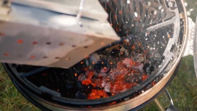 Разогрейте угольный гриль и подготовьтесь к использованию прямого гриллинга, установив барбекю-решетки в высокое положение