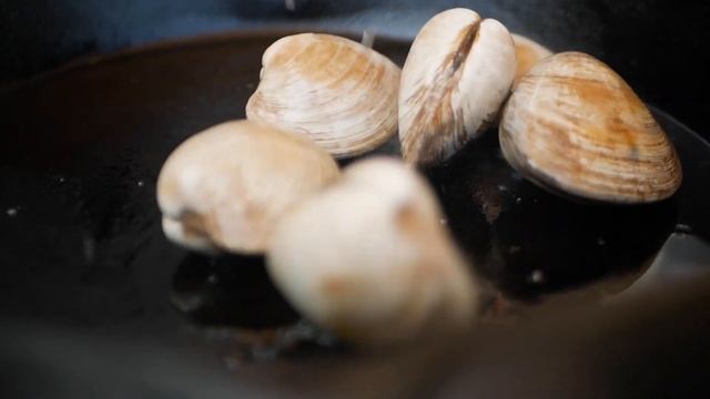Протрите чугунную сковороду и налейте столовую ложку растительного масла. Добавьте мидии, софрито и оставшееся вино. Пусть смесь потушится 5-7 минут