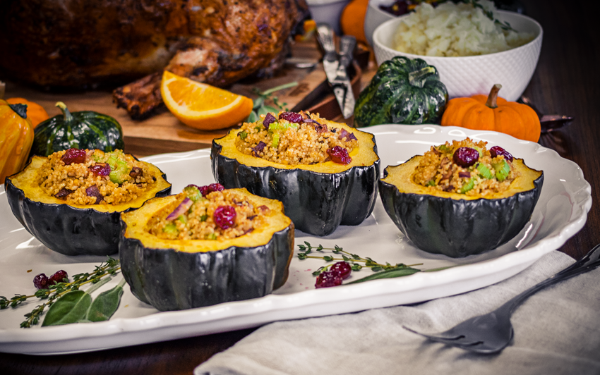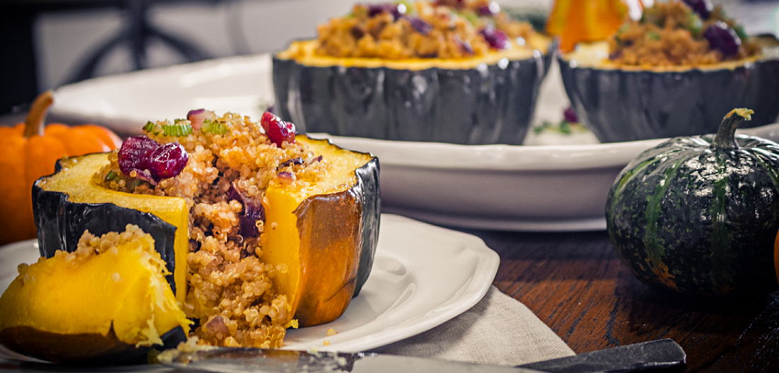 Когда тыква станет мягкой, снимите ее с гриля и заполните смесью с киноа. Верните на гриль и готовьте, пока все снова не станет горячим. Сбрызните дополнительным маслом, если хотите что бы образовалась хрустящая корочка