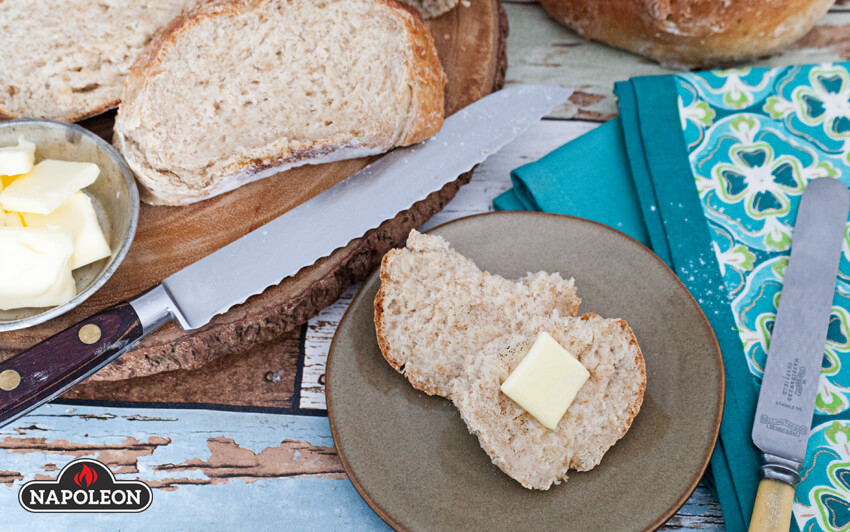 Этот хлеб очень вкусный, сытный и крайне прост в приготовлении. Использование камня для пиццы Napoleon обеспечивает правильную нижнюю корочку и равномерное пропекание. Поделитесь своими любимыми рецептами, историями и фотографиями в социальных сетях, используя хэштеги #NapoleonRussia #NapoleonGrills #NapoleonProducts