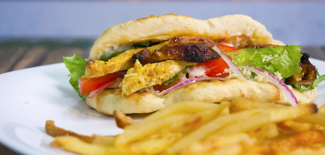 Срезайте готовую курицу прямо с вертела. Подавайте на свежей пите с тахини и Вашими любимыми начинками, такими как помидоры, сыр и огурцы. Подавайте с картофелем фри – традиционным гарниром к шаурме