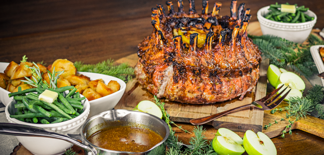 «Корона» из свинины, жаренной на гриле — блюдо для роскошного праздничного пиршества. Оно выглядит на миллион, но на самом деле очень легкое готовится. На его приготовление уходит столько же времени, как на индейку на вертеле, и оно сильно отличается от привычных блюд. Так что, приготовьте это запоминающееся блюдо и накормите всю семью. Серьезно, ОДНОЙ «короной» можно накормить до 20 человек! Какой у вас любимый рецепт праздничного блюда на гриле? Расскажите нам, поделившись своими рецептами и фотографиями на своих страничках в социальных сетях, используя хэштеги #NapoleonRussia #NapoleonGrills #NapoleonProducts