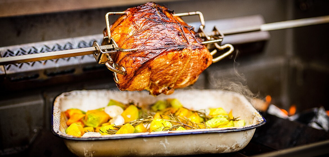 Закройте крышку гриля и оставьте жариться окорок в течение 45 минут