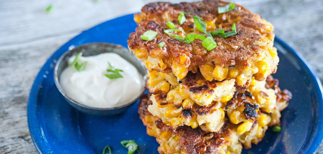 Сразу подавайте кукурузные оладьи со свежим соусом